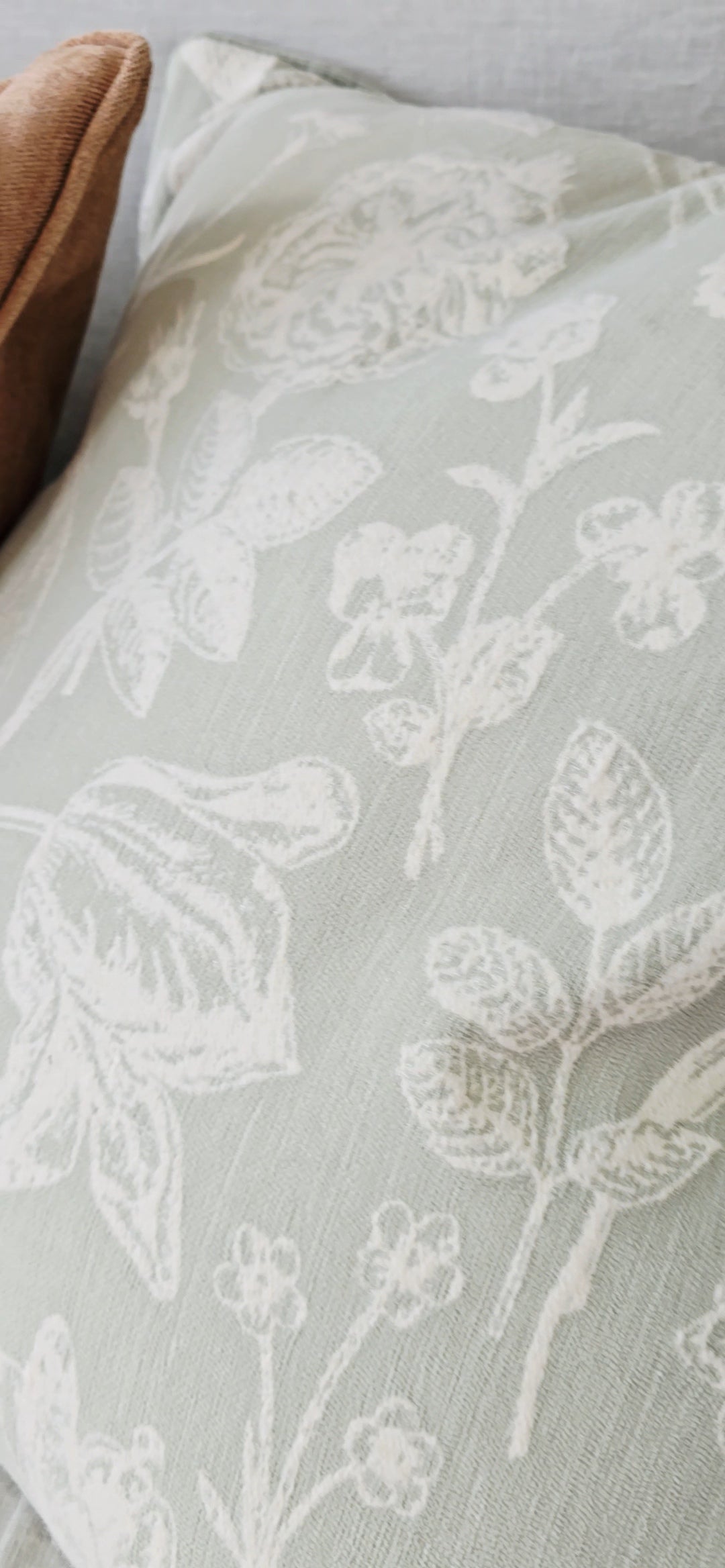 Botanical Tulips Cushion 55cm Square - Light Celadon Green