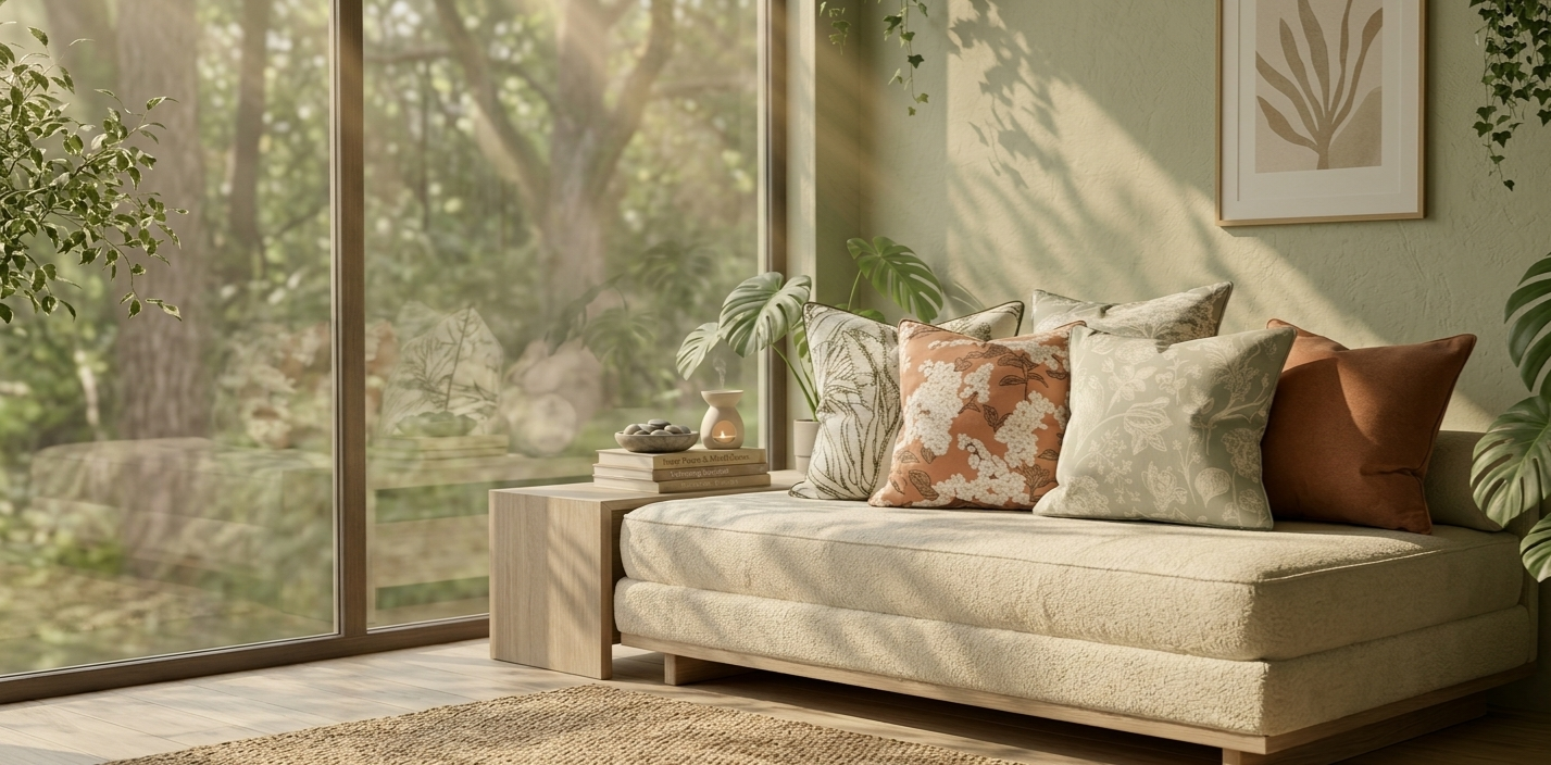 Ivory Tree Grove Cushion 55cm Square - Celadon Green