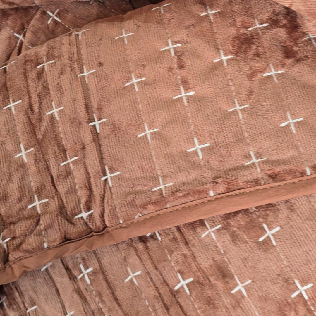 Introducing the NEW Sardinia Velvet Bedspread Coverlet Set. Made with luxurious velvet, perfect for the winter season. Adorned with a beautiful cross stitched design, this set will elevate your bedroom decor. It also comes with 2 matching pillowcases. Experience the ultimate in style and comfort.