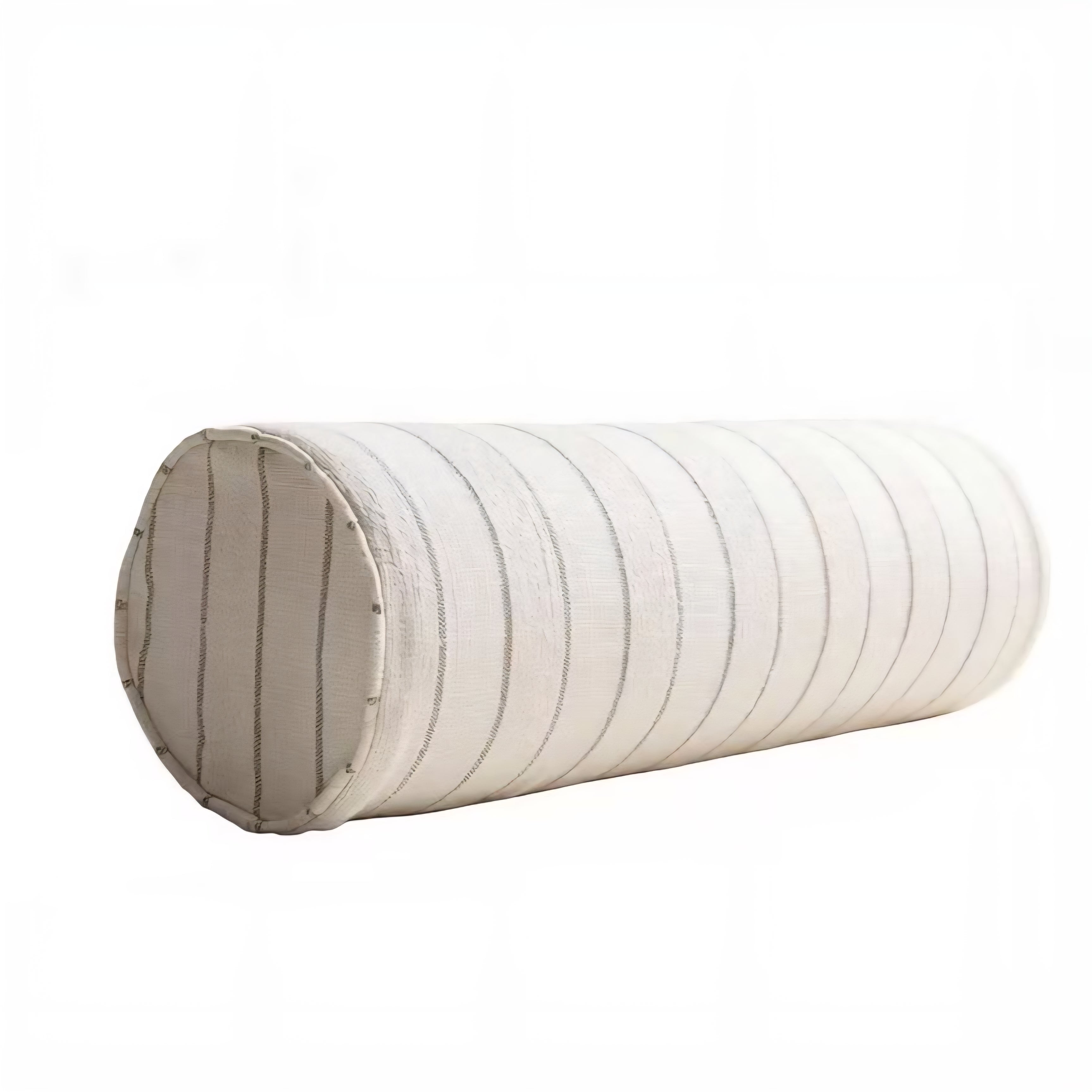 Isolde Linen Cotton Cushion Bolster 60cm Length - Stripe Oatmeal