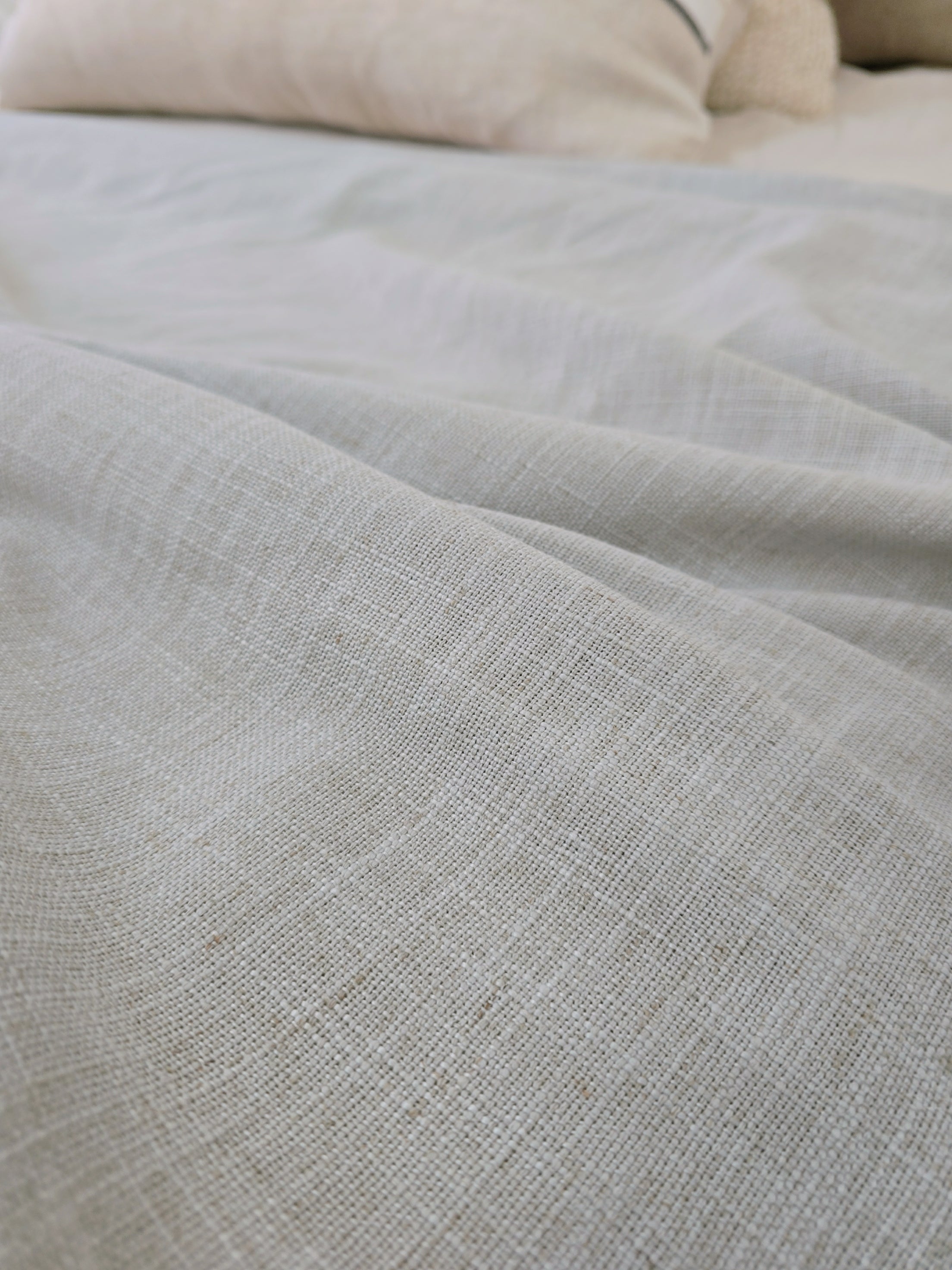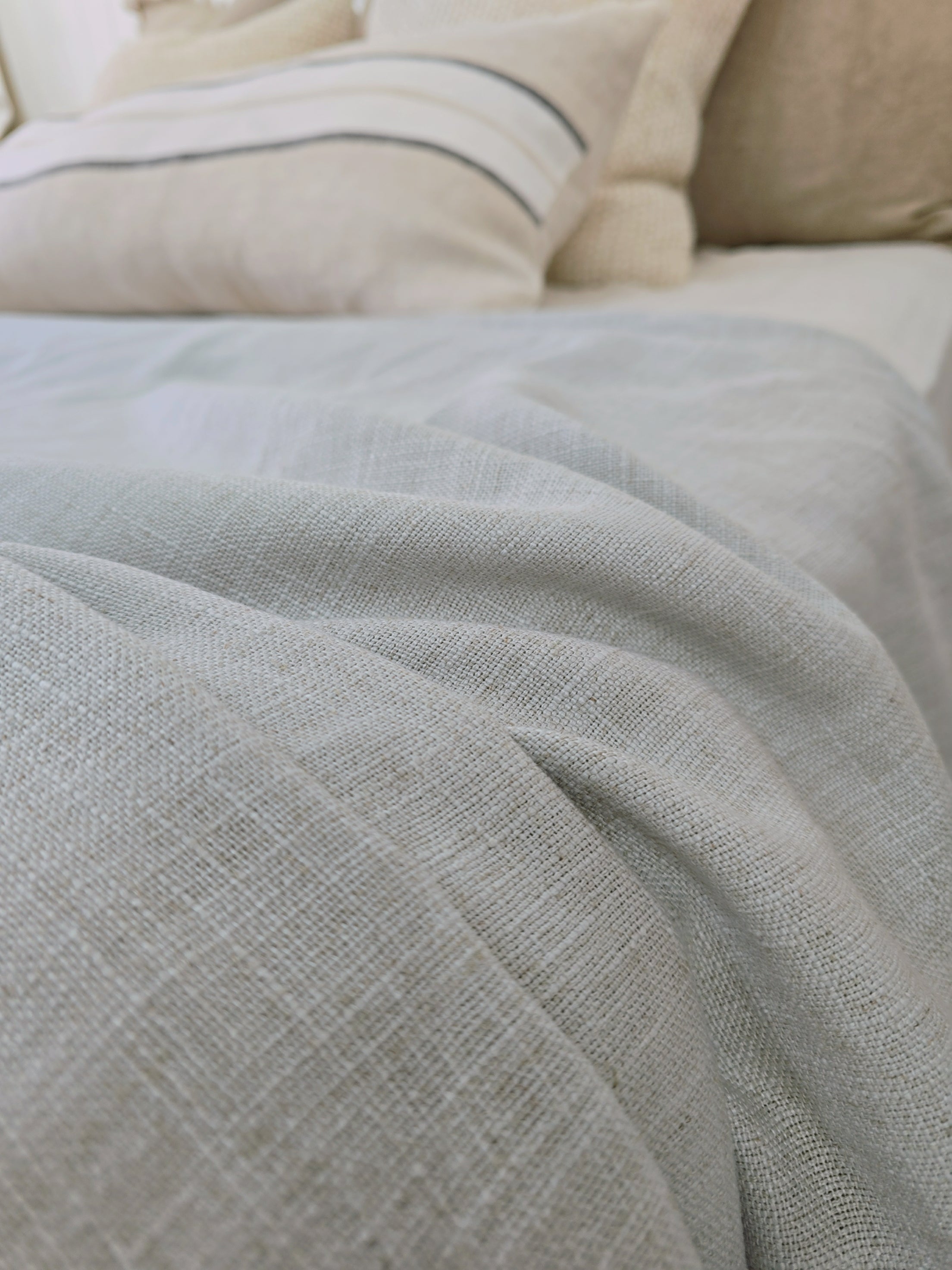 Crafted from a premium linen blend, this expansive bed cover delivers both style and practicality. The generous 140cm x 220cm dimensions make it ideal for layering across beds or draping over sofas, while the sophisticated dusty blue hue complements contemporary and classic interiors alike. The natural linen composition offers breathability and durability, developing a subtle texture with use. Perfect for adding depth to your bedroom aesthetic or providing versatile coverage throughout your home.