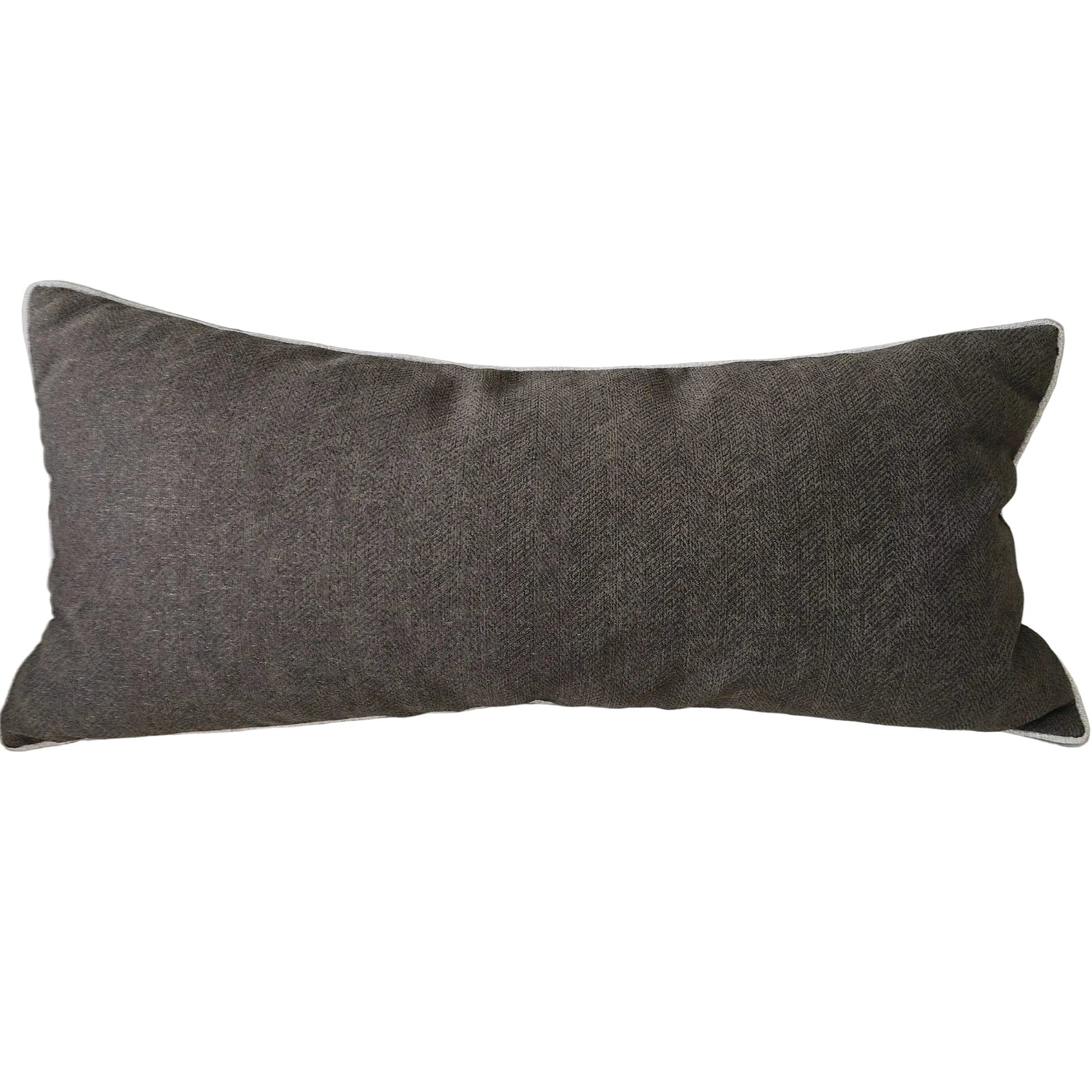 Hailey Linen Chenille Cushion 40x90cm Long Lumbar - Charcoal with Natural Piping