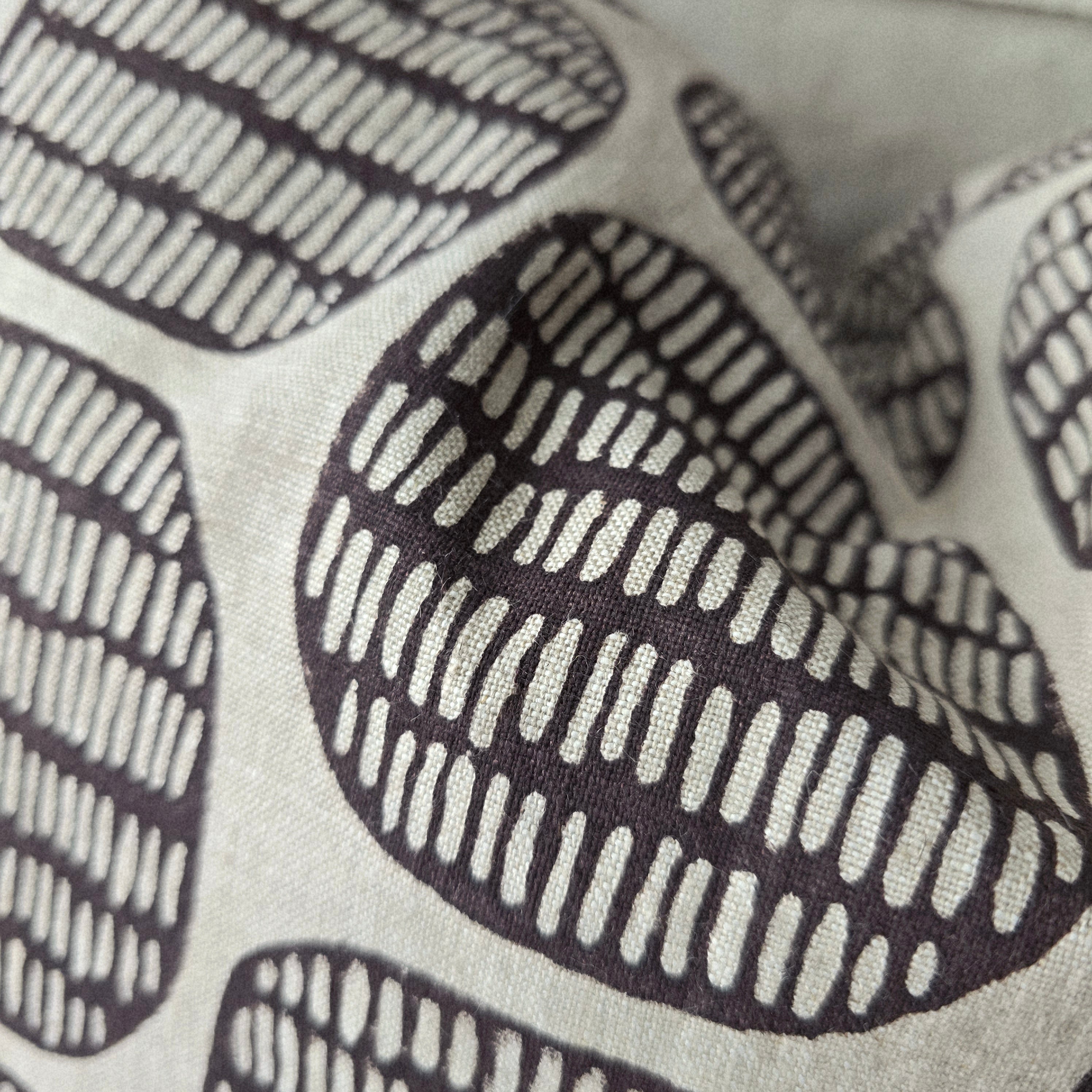 The Outback Artisan Block Printed Heavy Weight Pure French Linen Cushion 55cm Square - Coffee Bean