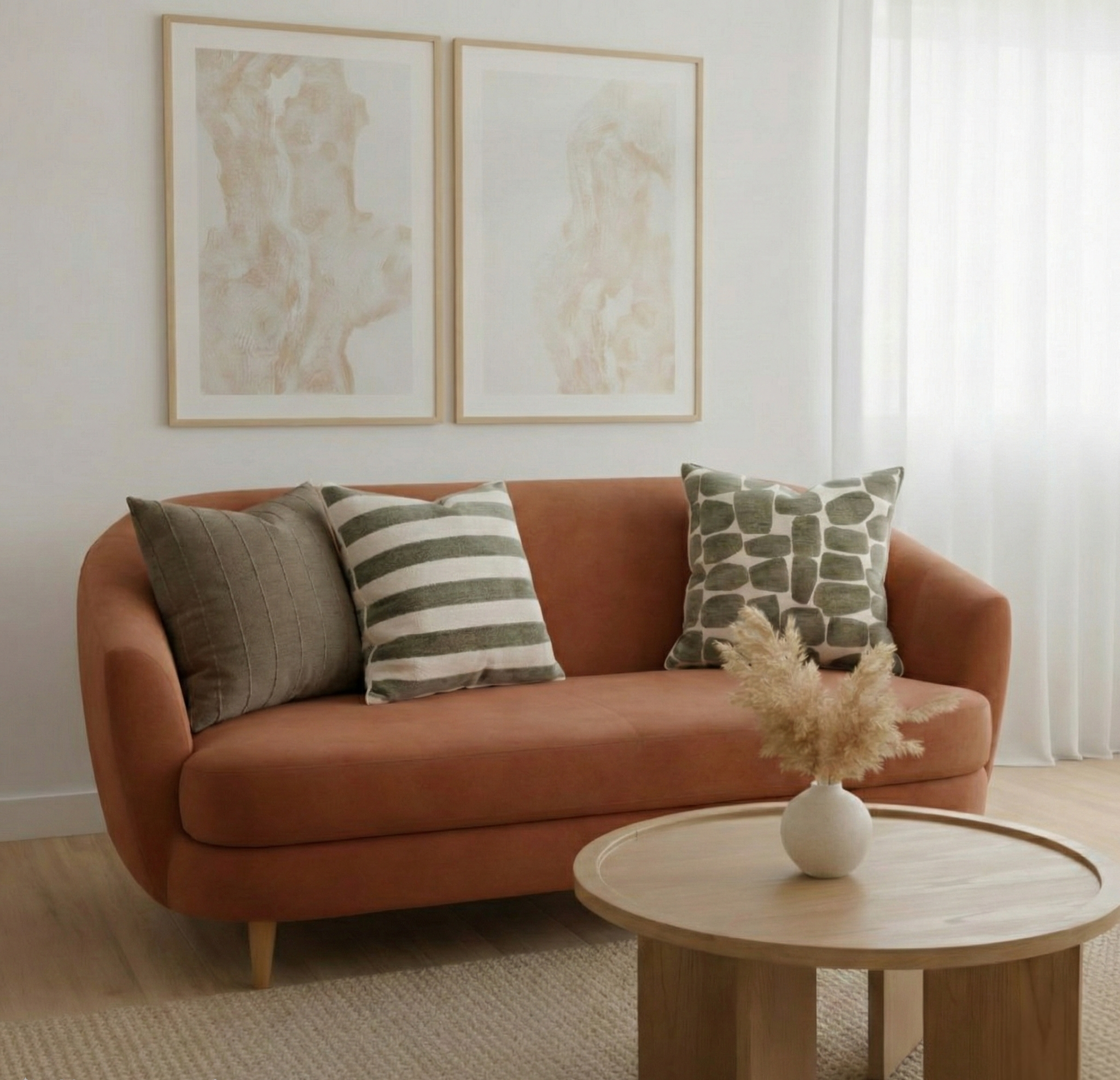 The Daleyza Cushion brings contemporary style to any living space with its distinctive striped pattern in soothing moss green. This generously sized cushion works beautifully as a statement piece on sofas, beds, or accent chairs. The neutral green tone complements both modern and traditional interiors, while the linear striped design adds visual interest without overwhelming your décor. Perfect for layering with other textures or standing alone as a focal point, this cushion combines aesthetic appeal with practical comfort for everyday living.