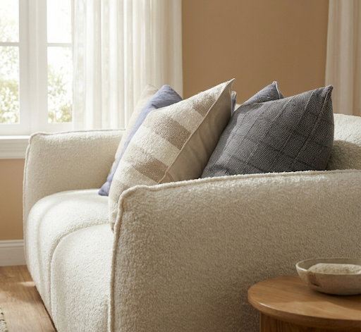 Meet our Greta - the Softened Grid. For 2026, we’re trading stark lines for tactile depth. This collection features a raised, 'slubby' weave that brings a sense of Soft Architecture to your sofa. It’s the perfect way to add structure to your space without losing that cozy, lived-in feel.