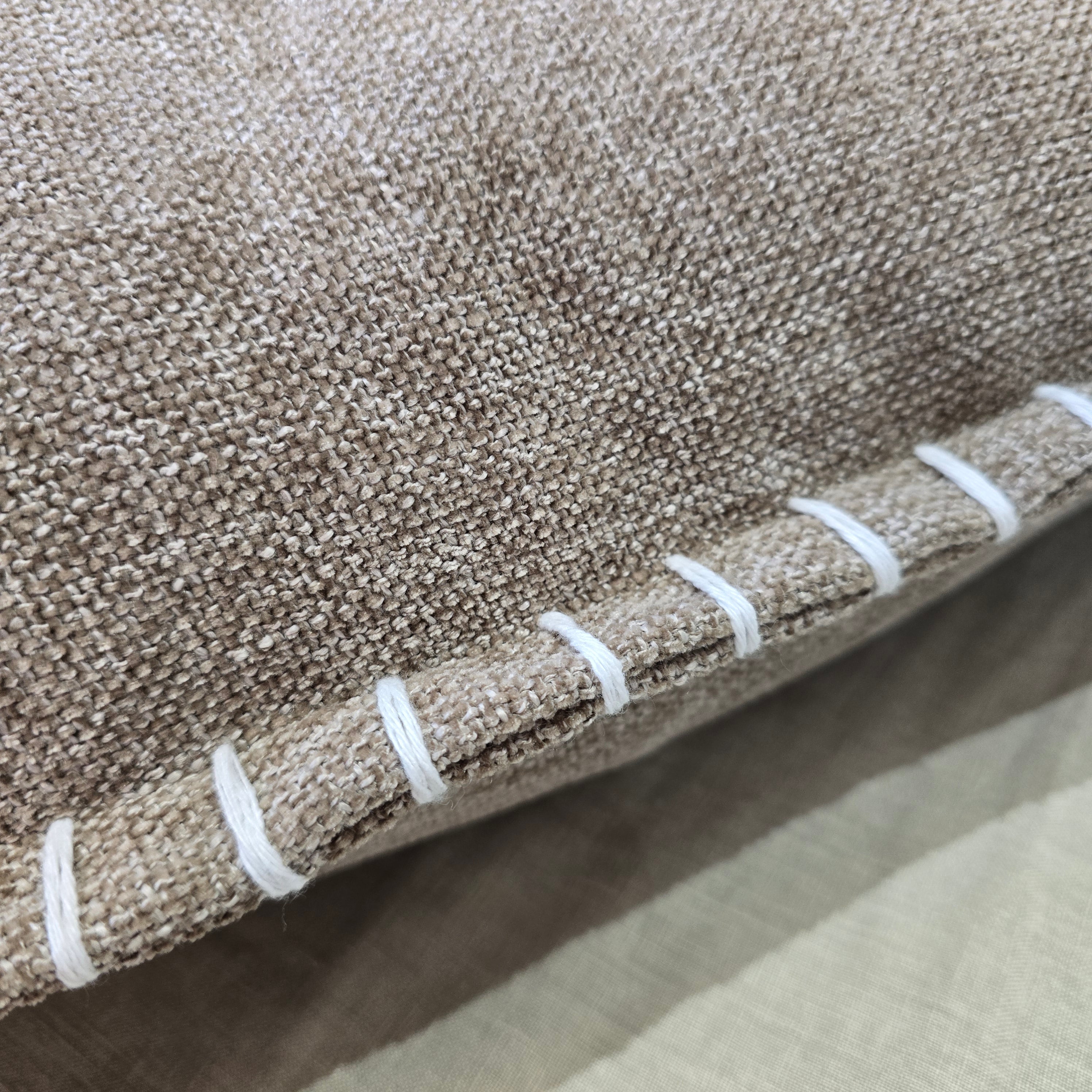 We’ve stripped it back to basics: premium textured durable fabric fabric in soothing earth tones, finished with a signature hand-stitched edge.