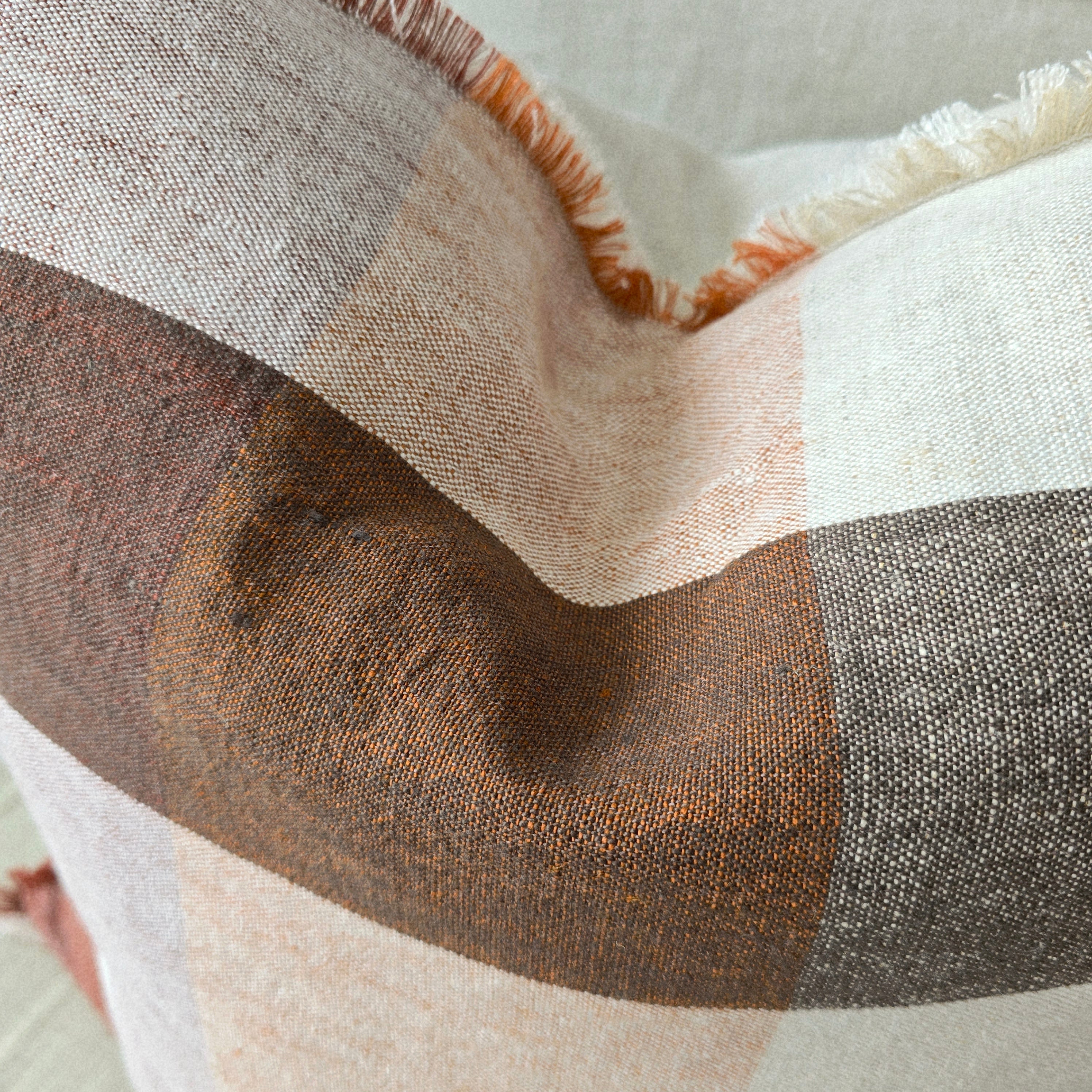 PREORDER EARLIER OF FEB DROP | LUMERE Yarn-Dyed Linen Cushion 55cm Square - Plaid in Warm Rust | Brown | Natural
