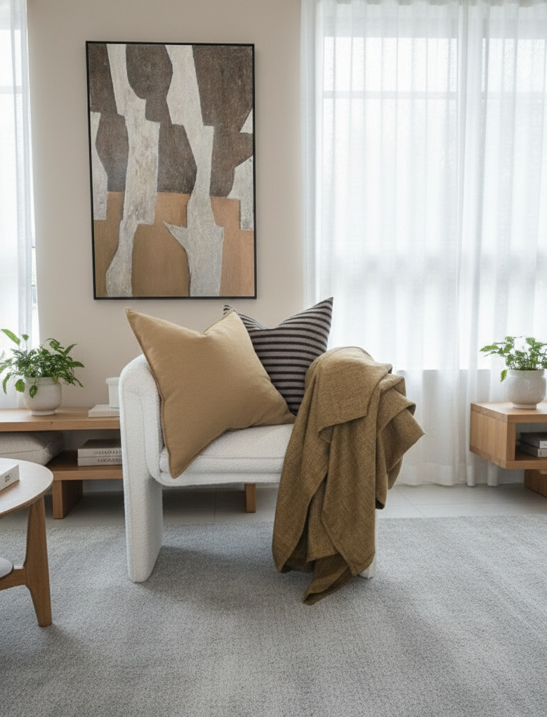 The Sierra Massive Throw in Ochre is a generously proportioned textile piece, ideal for layering across larger furniture arrangements or creating dramatic wall installations. Crafted with attention to quality construction, this throw delivers substantial coverage while maintaining a refined aesthetic. The ochre colourway—a warm, earthy tone—complements both contemporary and traditional interiors, offering versatility across various design schemes. Perfect for adding texture, warmth, and visual interest to living spaces, bedrooms, or as a statement piece in any room requiring a touch of sophisticated colour.