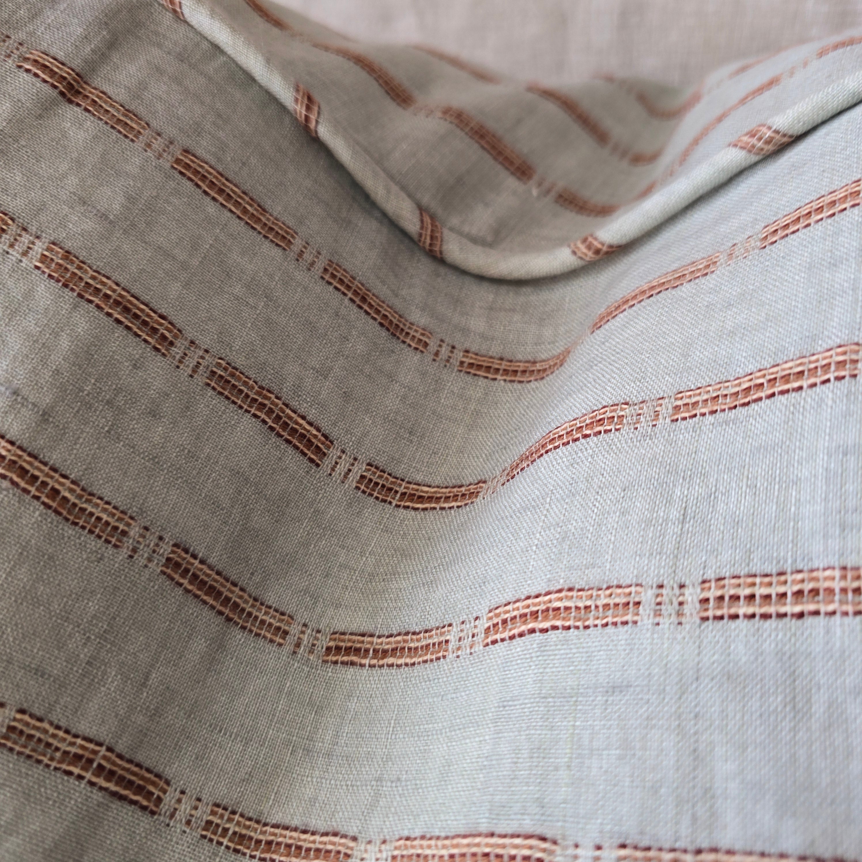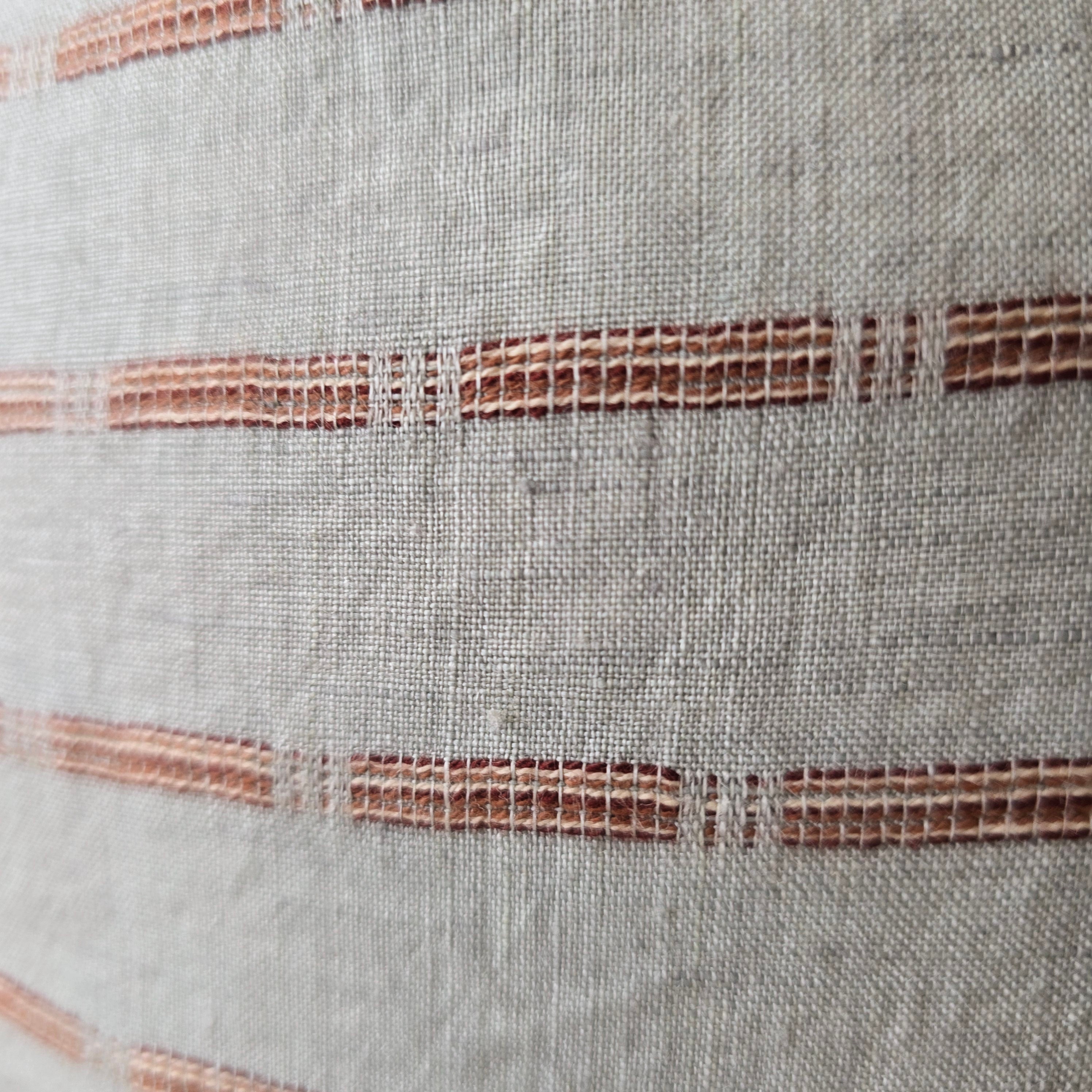 The Soleil Linen Cotton Cushion combines the warm cinnamon hue with a refreshing mint green base for a sophisticated look. Crafted from a linen-cotton blend, it offers durability and a natural texture that enhances any living space. Its generous size provides comfortable