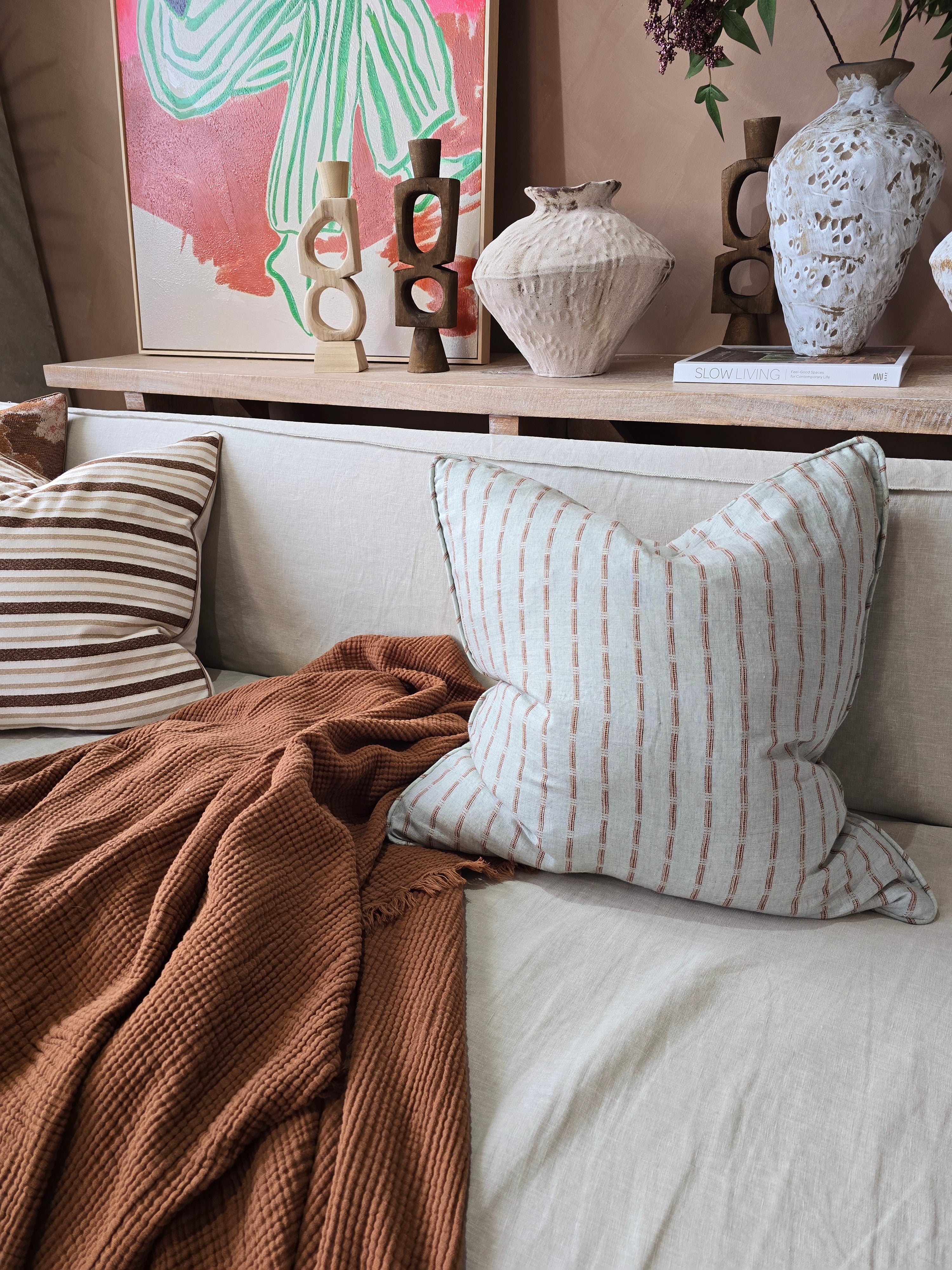 Soleil Linen Cotton Cushion 55cm Square - Cinnamon | Mint Green Base