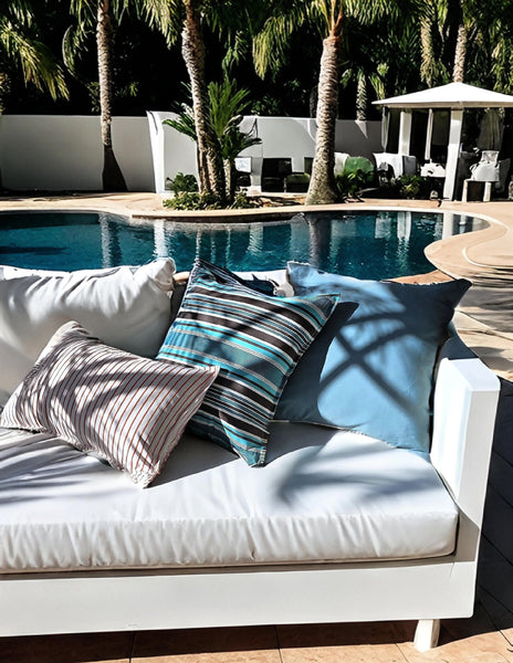 Introducing our New "Sunlit Serenade" outdoor cushion collection, where vibrant hues meet enduring quality. These cushions, crafted from solution-dyed fabric, boast brilliant, has plain or striped designs that enliven any outdoor space.