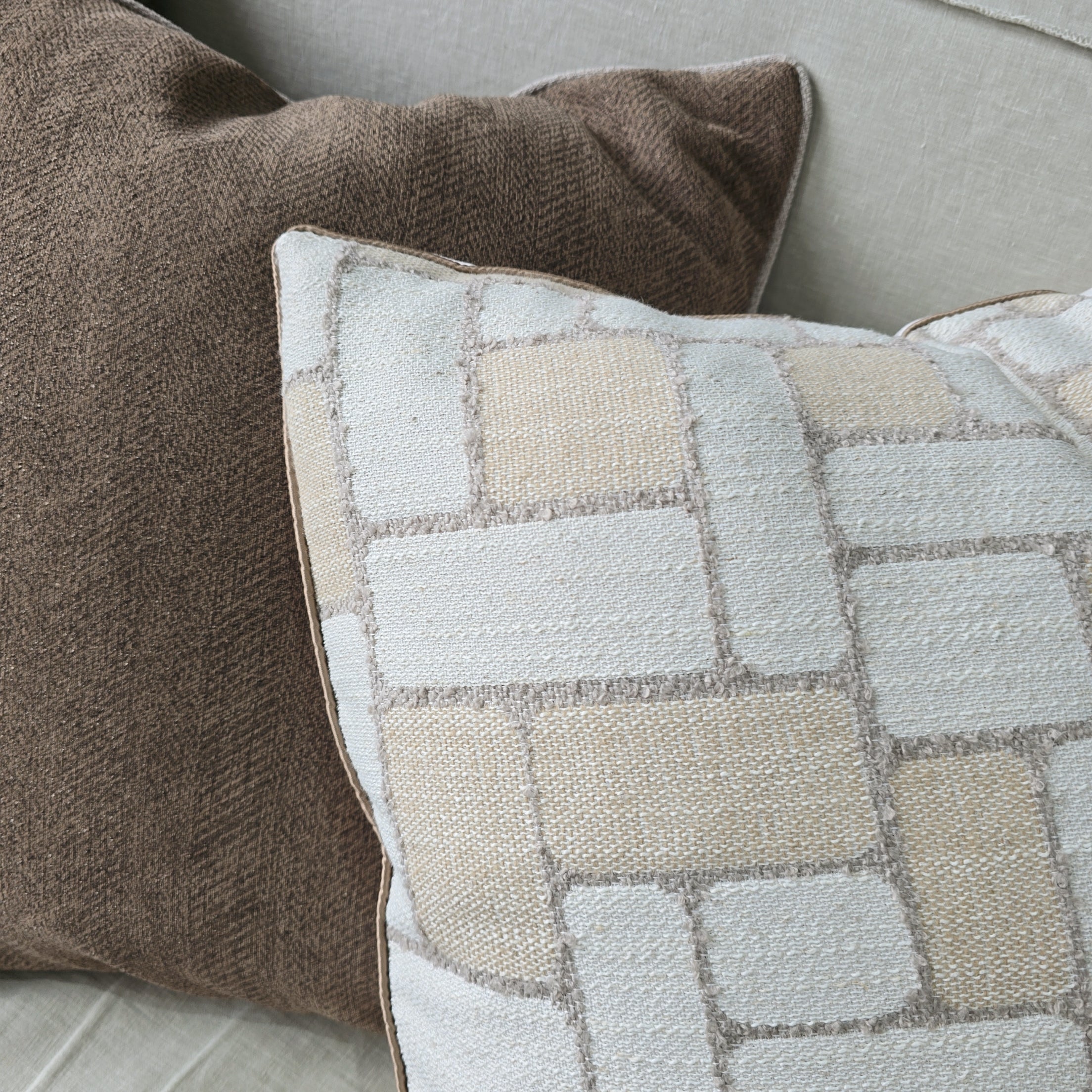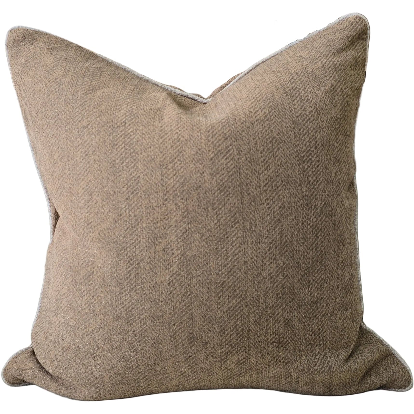 Hailey Linen Chenille Cushion 55cm Square - Camel Brown with Natural Piping