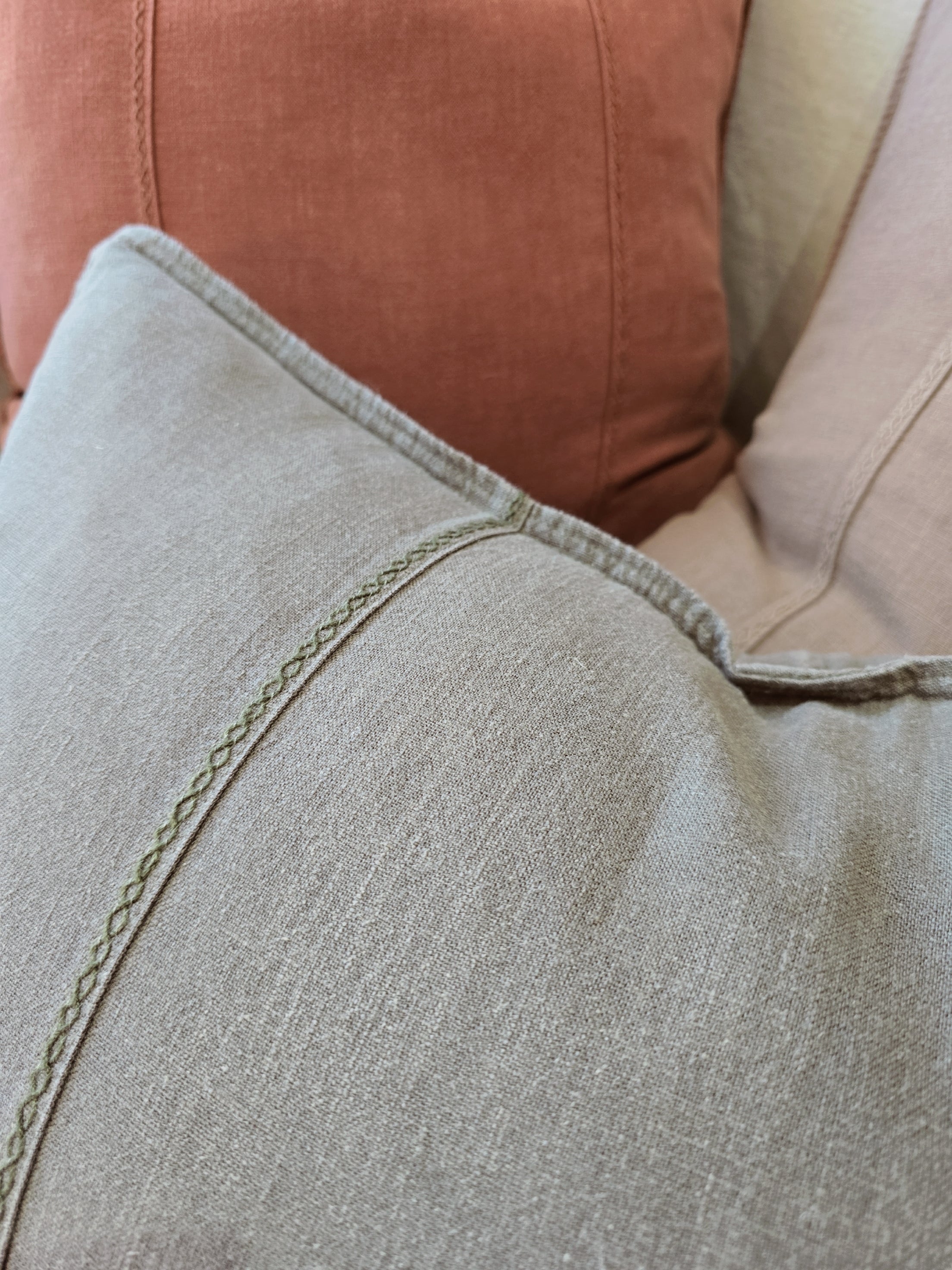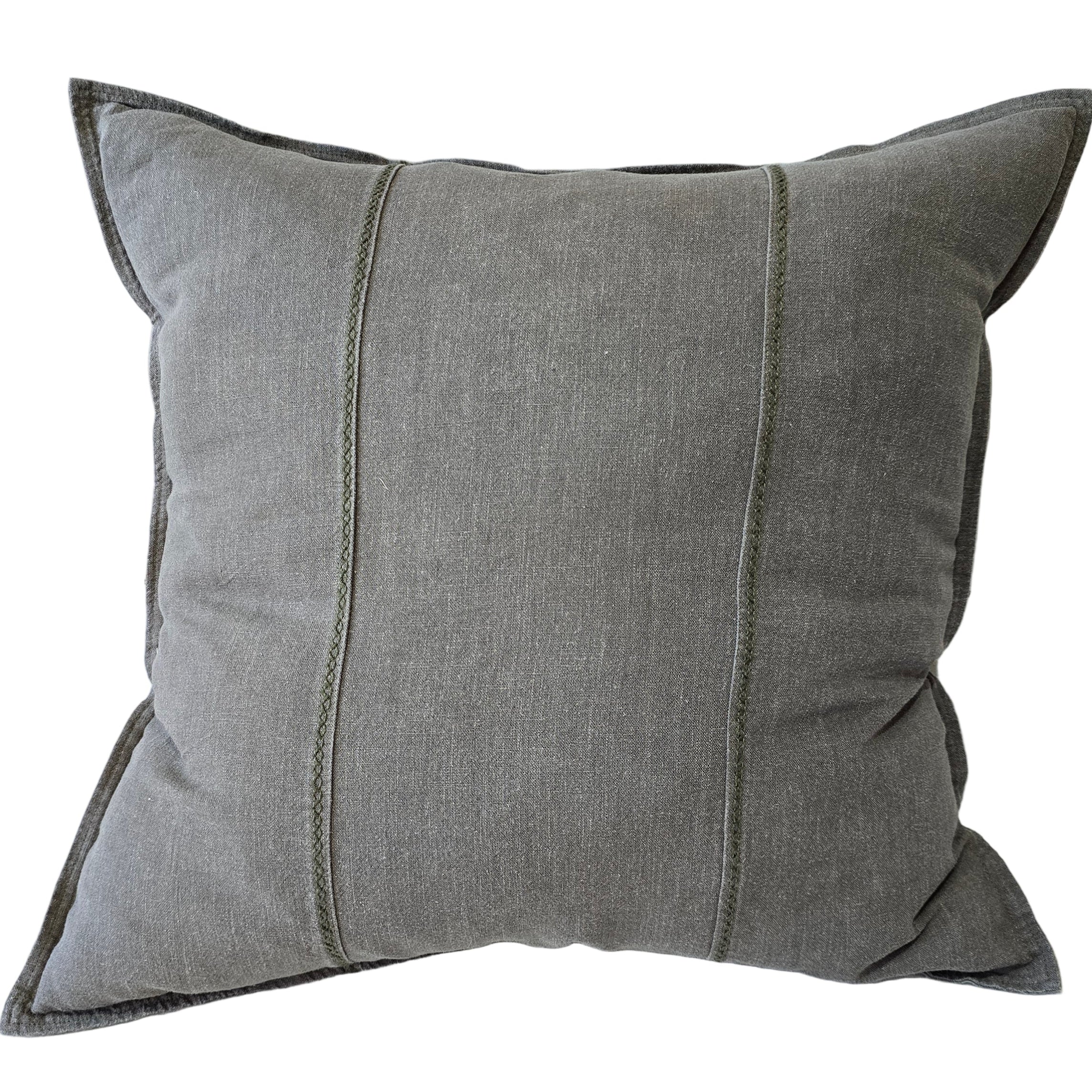 PREORDER JANUARY 2026 DROP | Eveleigh Stonewashed Linen Cotton Cushion 55cm Square - Eucalyptus Green | Embroidery Double Striped