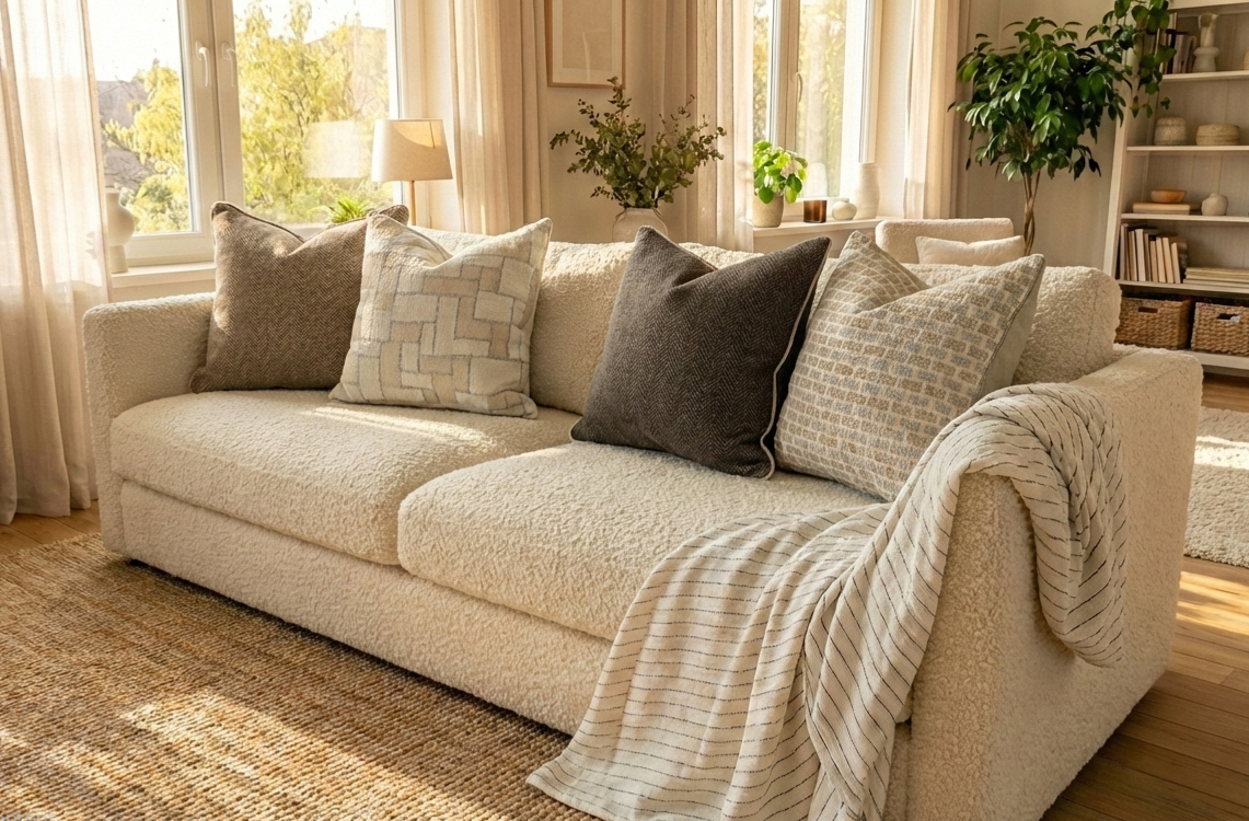 The Lattice Collection features a sophisticated raised tufted weave that creates a striking three-dimensional grid pattern. Unlike flat prints, the design showcases plush, dimensional rectangles in a bouclé-inspired texture that contrasts beautifully against the smooth background fabric. This textural interplay delivers exceptional tactile appeal, adding depth and visual interest to any seating arrangement.