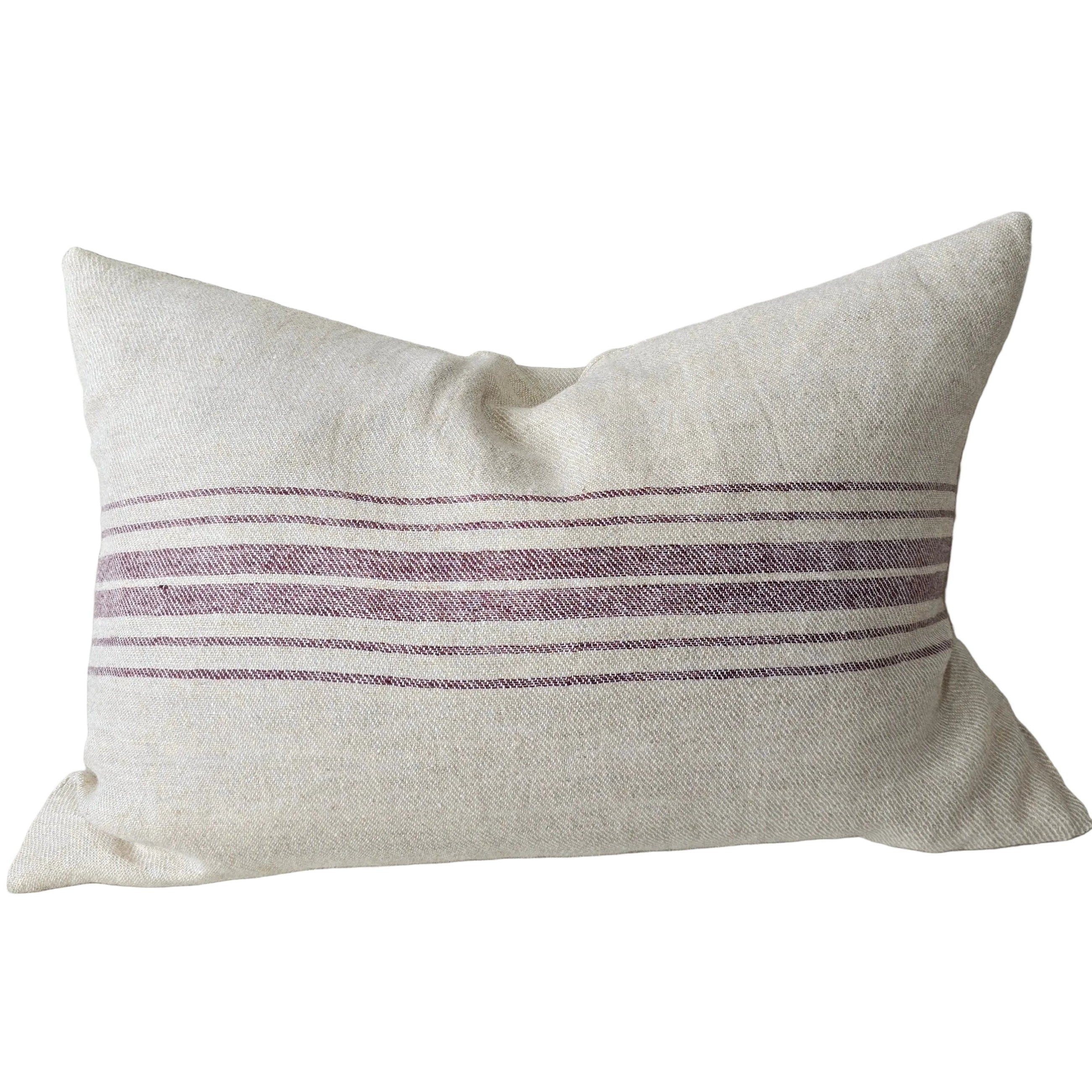 LUMERE Yarn-Dyed Linen Cushion 40x60cm Lumbar - Dusty Plum Striped