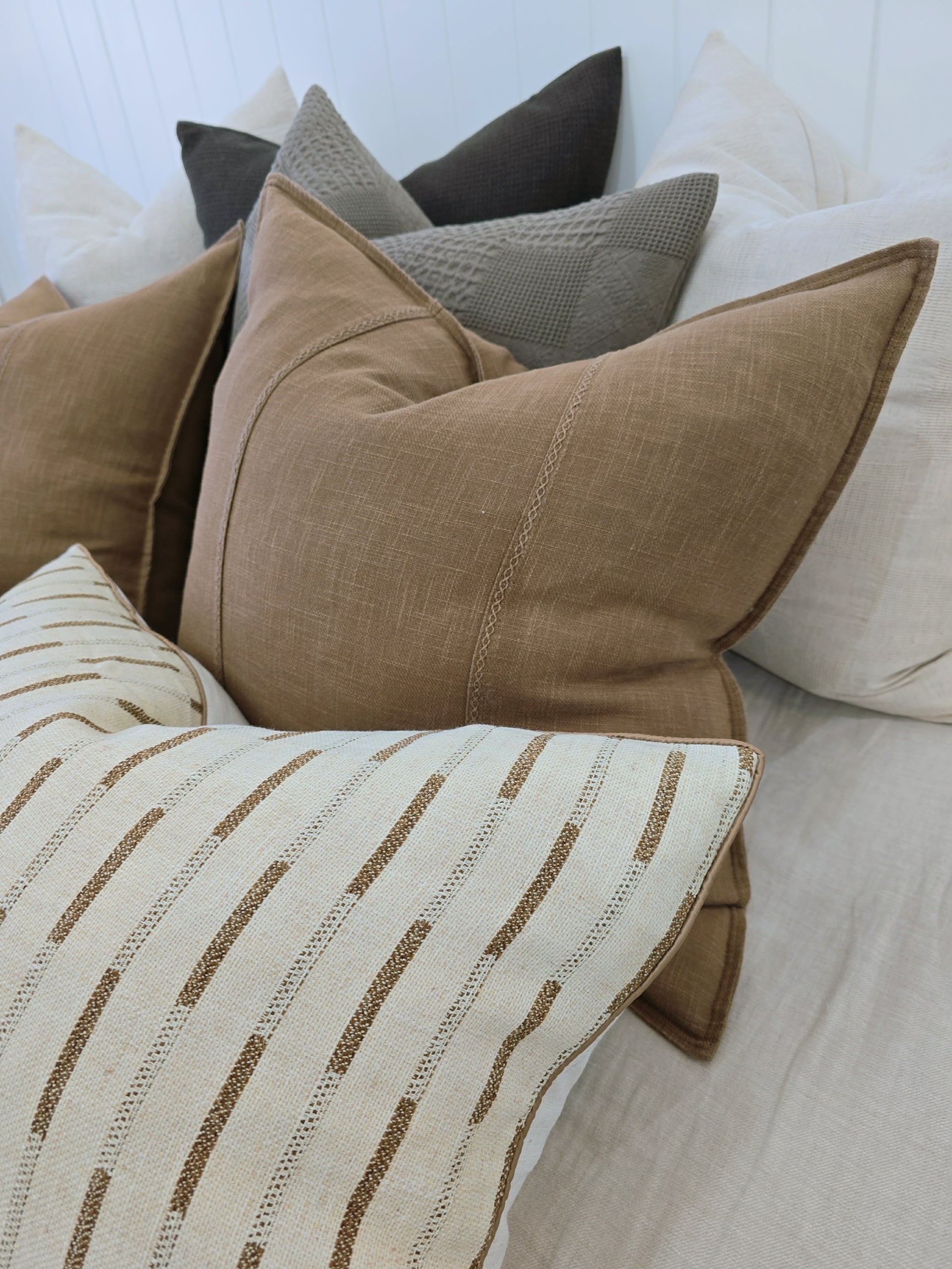 The Aurora Cushion brings sophisticated comfort to any interior space. It features a contemporary design that complements both modern and traditional décor. Crafted with quality materials, it provides excellent support and maintains its shape through regular use. The neutral brown tone integrates seamlessly into existing colour schemes, making it a versatile addition to sofas, chairs, or beds. Ideal for adding layered comfort and visual interest to your home.