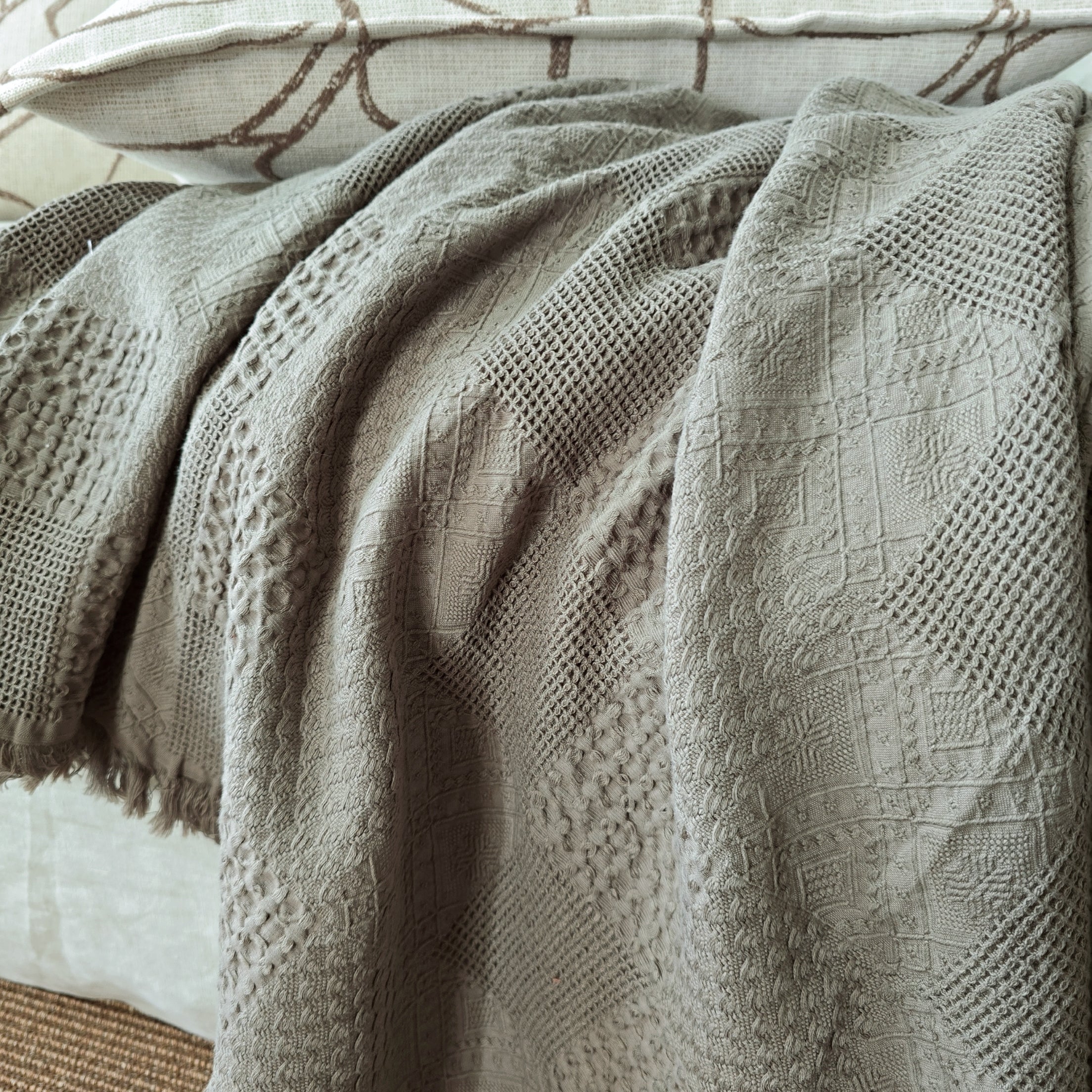 Piper Waffle 100% Cotton Throw 140x190cm - Dark Khaki Green