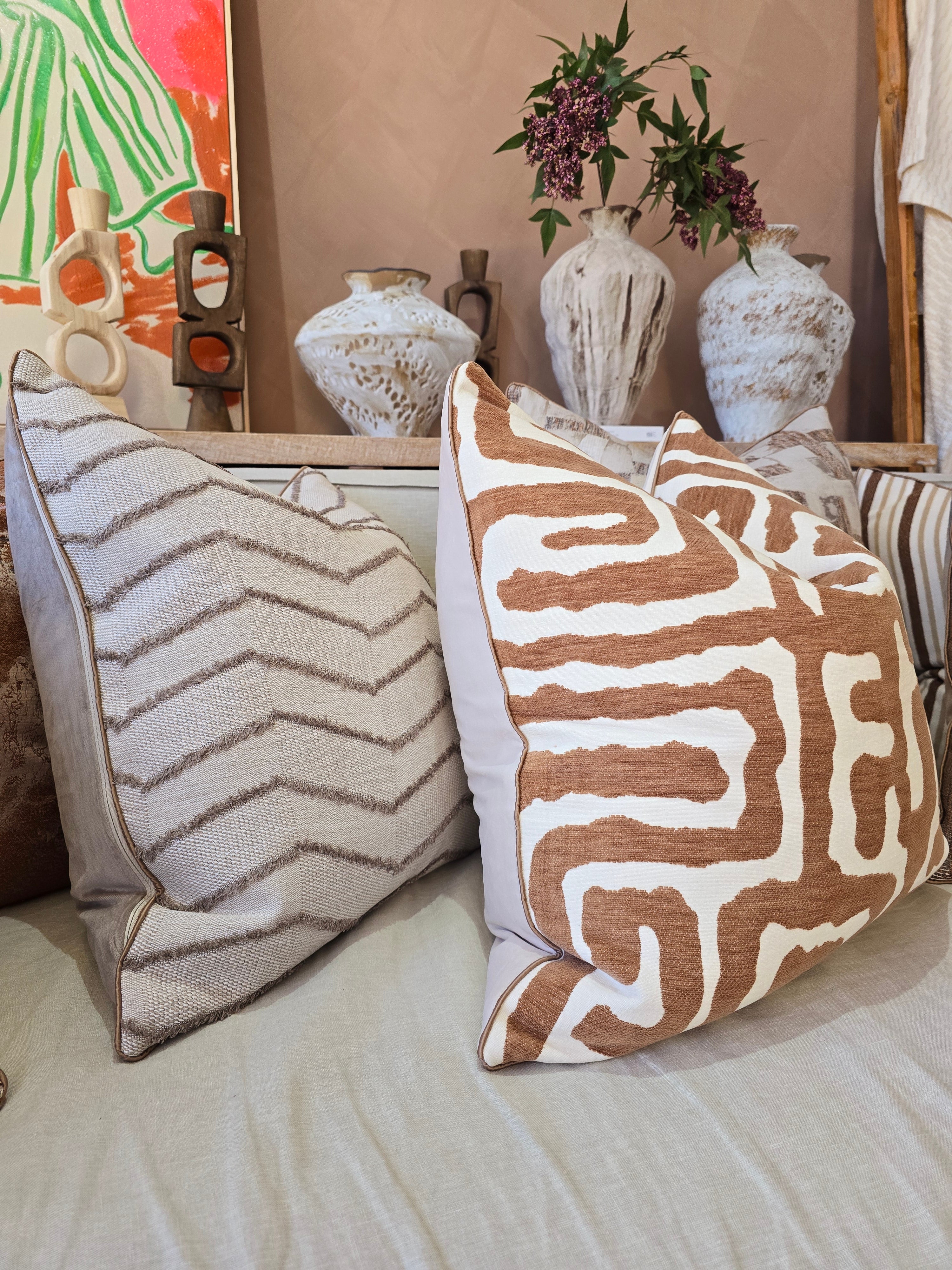 RESTOCK END OF NOV | Serene Cushion 55cm Square - Earthy Brown Striped | Cream White